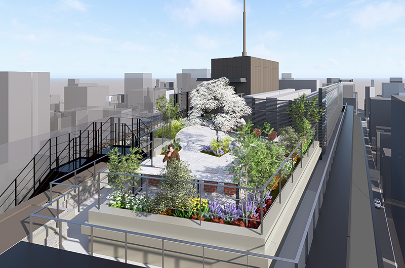 温かな迎賓空間、心地よい自然環境、街との調和をもった建築を目指します。