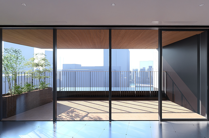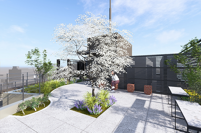 専有部のキッチンでコーヒーを入れ、屋上へ。